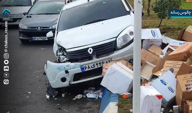 - خودروی سواری ساندرو نیز پس از انحراف از مسیر، با جدول کنار خیابان برخورد کرده و قسمت جلویی آن دچار خسارت شدید شده است.